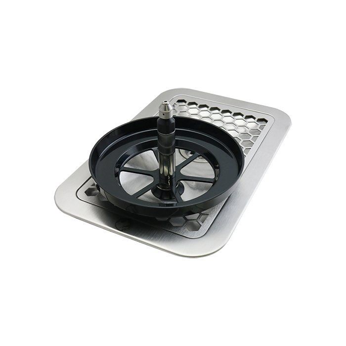 - Superior Drainage: The honeycomb grate design minimises the surface area of the drain tray, reducing the static build-up of liquids and making cleaning easy. The low profile body is optimally sloped and angled to ensure effective removal of liquids, reducing common odours caused by static waste. A large drain outlet and wide grate-free opening near the drain creates a convenient location to quickly discard larger volumes of liquid.